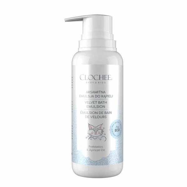 The formula of the gentle Clochee Baby Kids bath emulsion contains valuable ingredients that will help you take care of it properly – incl. moisturizing and soothing aloe extract, borage and pumpkin seed oil, panthenol, sweet orange peel extract and a set of prebiotics.