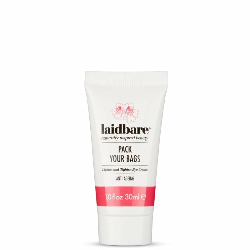 DIRECTIONS FOR USE: For best results use Laidbare Pack Your Bags Lighten & Tighten Eye Cream night and day, dab a small amount around the eye area, gently press until absorbed.